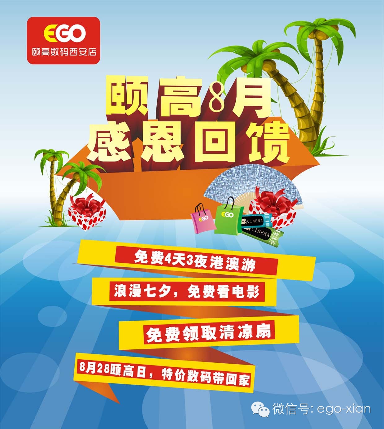 颐高八月,感恩回馈。颐高数码西安店8月活动精彩绽放,谁是免费港澳游的幸运者?