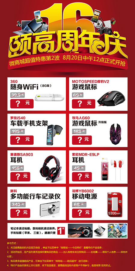 4、特价产品由买家线上支付货款,线下到店提货,颐高数码连锁内部商户不得参与;